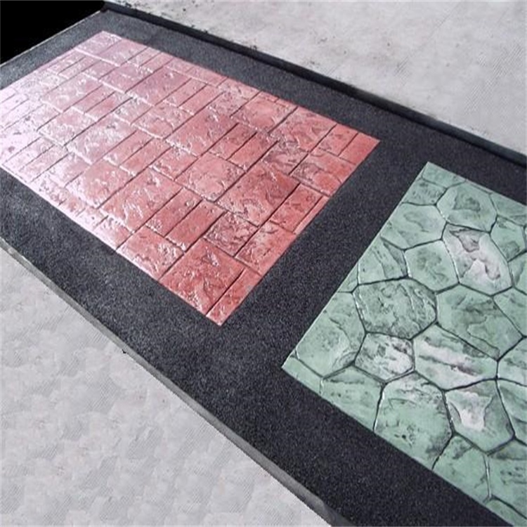 4.彩色脫模粉處理:施工的表面均勻拋撒彩色脫模粉,將整個(gè)表面覆蓋,同時(shí)在模具的表面也撒上一些脫模粉;